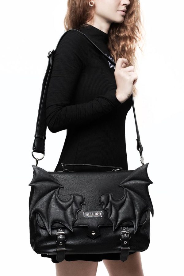 You prefer the streets empty around 3 am – when the batwings flutter across the moon; ‘Le Fey’ messenger bag in premium faux leather with statement wing-applique front is a total MUST-HAVE! The perfect size for yer busy lifestyle, day or night – including buckle detailing, zip closure, inner zip pocket and an adjustable shoulder strap for ultimate comfort.